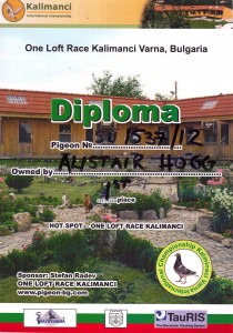 *1st Prize for my friend Sorin Dudu 854 club birds and 5th Federation 1392 birds from a gift young bird from myself Congratulations this is Sorin's 1st win at his new location 100% Alistair Hogg.