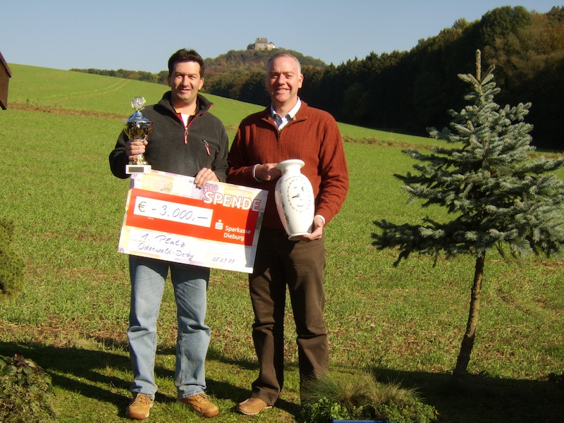 Being presented with my winners cheque and Trophy for being 1st Prize Final in the Odenworld Derby ,Germany