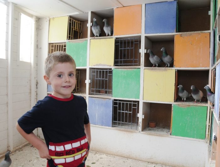 Racing pigeons is a family affair our son “Argyle” proudly showing Chinese visitors our top pigeons in the old loft prior to the NEW double level loft being built..